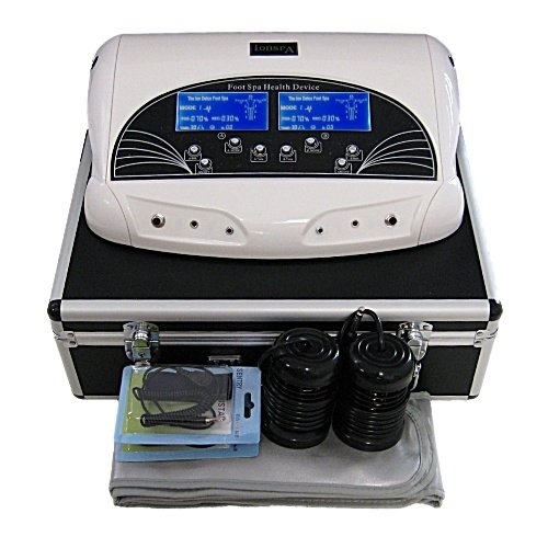 Your HEALTHandMED Foot Bath System Includes: *3 Months Free Detox Consultation. *Free health assessment. *Two 304-type stainless steel ion activating arrays with 10 double coils of steel(40-60 uses each) *Two Bamboo charcoal FAR Infrared waist belts *TWO LCD Screens - no more toggling back and forth during a two-person session *Carrying Case for Dual Ionic Detox Machine, Arrays and Other Accessories - Simplifies transport of your system from house to house or business to business *Two wrist straps *Tube of conductive wrist strap gel *Long Power cord * Operating Instructions written by HEALTHandMED *14 Page Booklet with protocols, best practices and background info on ionic detox *Warranty covering defects in material and workmanship for one year What Makes This Ionic Foot Bath Better Than All the Others? 1)Two systems in one-two people can enjoy the experience of detoxifying together 2)Far Infrared Therapy Function - Two great therapies in one! During foot detox sessions, you can also use the FIR belt to relieve muscle aches, increase the cell's activities and accelerate blood circulation. FIR belt may also be used independent of ionic detox. 3)Powerful-operates at 100 Watts, 15 Volts and 1.0 - 2.5 Amps 4)User friendly -- includes a treatment time control and ion intensity control. 5)Operates from 220 volt and 110 volt power sources (can use worldwide) 6)Safe to operate.